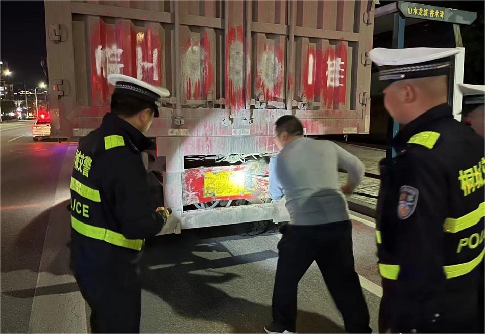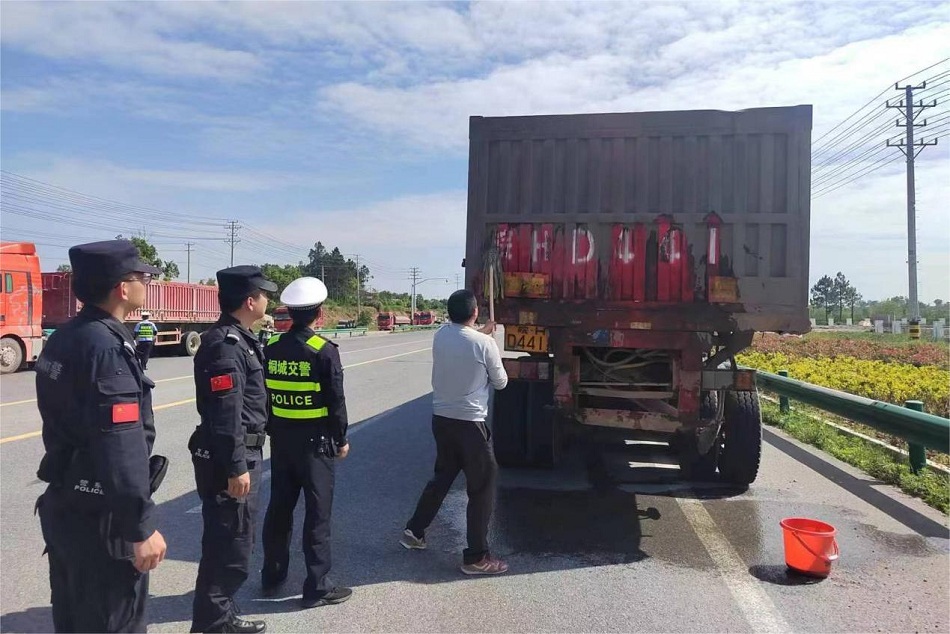 桐城交警、特警紧盯新、老206国道、237国道等大货车集中通行路段,采取定点值守与流动巡逻相结合的方式,全天候强化路面管控,对发现货车号牌、放大字样被污损、遮挡的,一律拦停检查,在对违法驾驶人依法处罚后,责令其现场擦洗清理,让号牌、放大字样清晰可见。为方便驾驶人清洗,桐城交警自备水桶、拖把、抹布供其使用。同时,桐城交警会同交通等部门,突出傍晚、夜间、凌晨等重点时段,联勤查处大货车超载超限、闯红灯、非法加装强光灯、违法停放等违法;利用缉查布控系统,研判查处大货车疲劳驾驶、使用伪造变造号牌等严重违法行为,全面防范化解大货车交通安全风险。